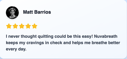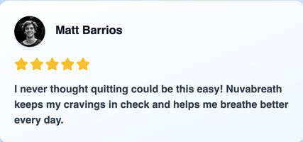 Nuvabreath helps you stay calm and in control without nicotine or stress. Each breath releases natural aromas that ease cravings and boost focus. Compact, sleek, and designed to make healthy habits feel effortless — wherever you go.