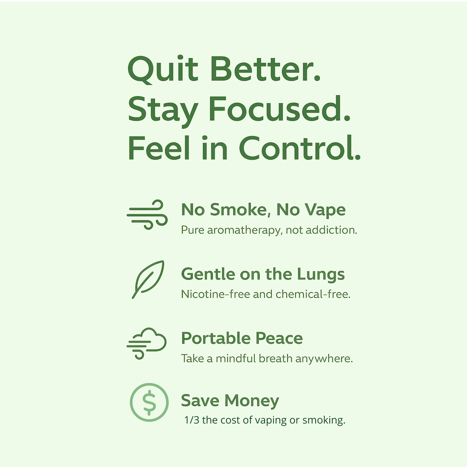 Cravings often start with habit, not need. NuvaBreath replaces that habit with something better β mindful breathing and natural scents that keep your hands and mind busy while relaxing your body. No nicotine. No smoke. Just calm.